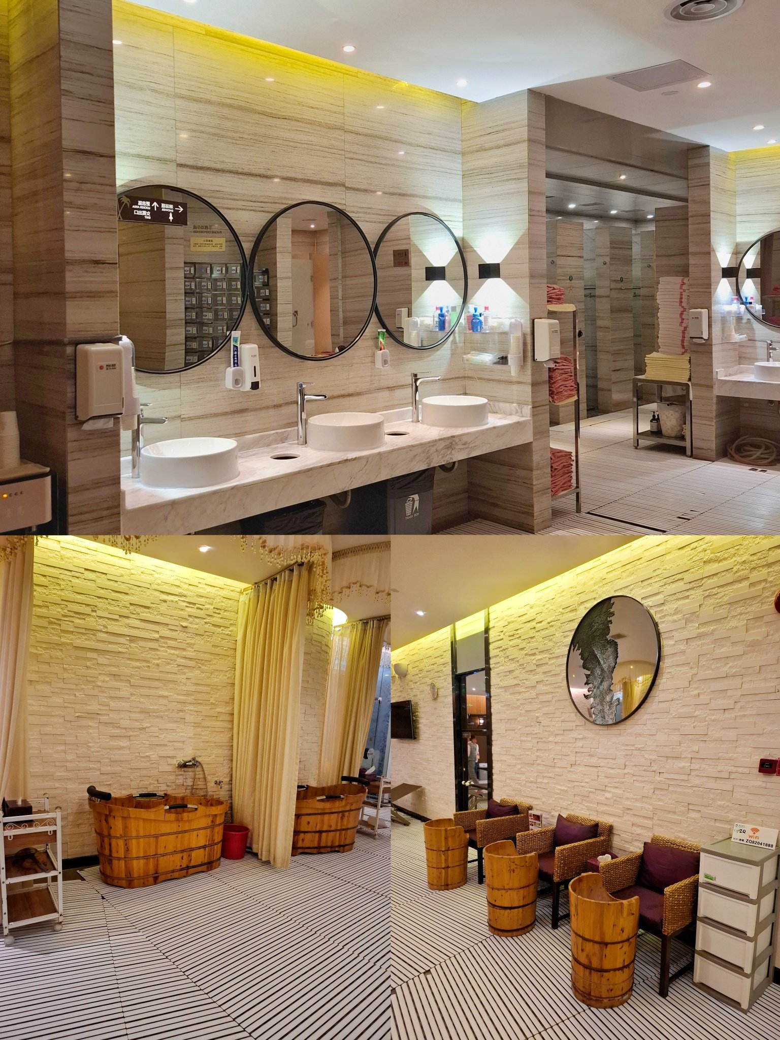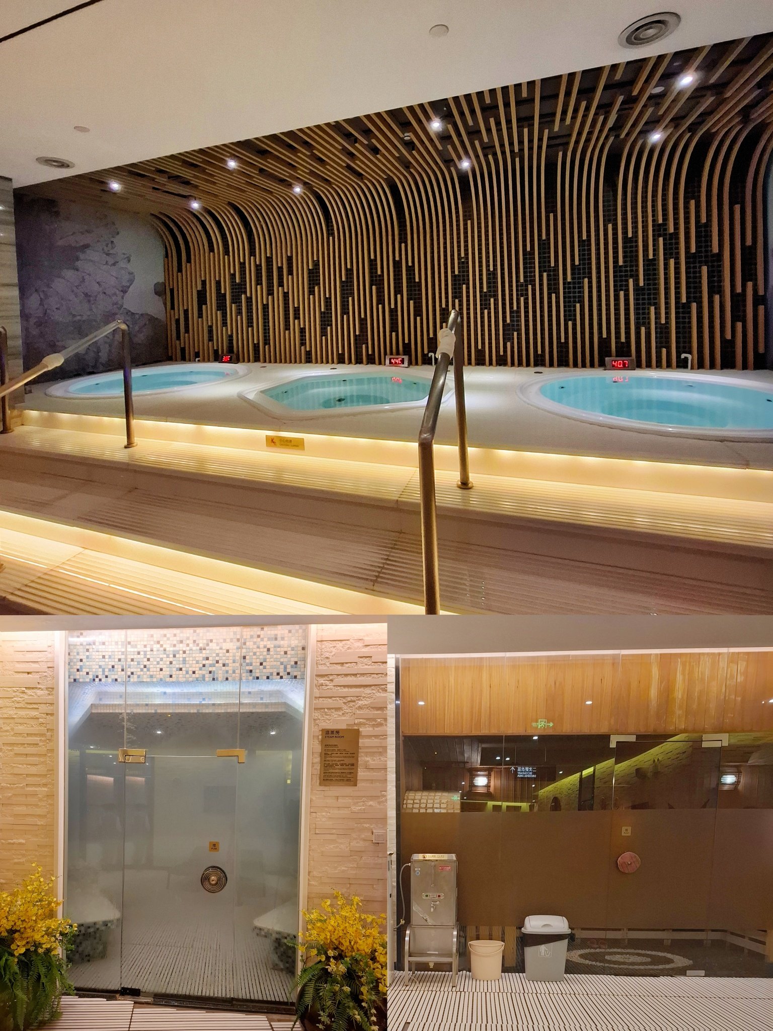 水療會所擁有全新的設備,環境又大又乾淨整潔。樓高三層,空間感讓人倍感舒適,男、女生更衣室更寬敞,有浴池、桑拿、乾濕蒸房、獨立淋浴間、更衣室及置物櫃